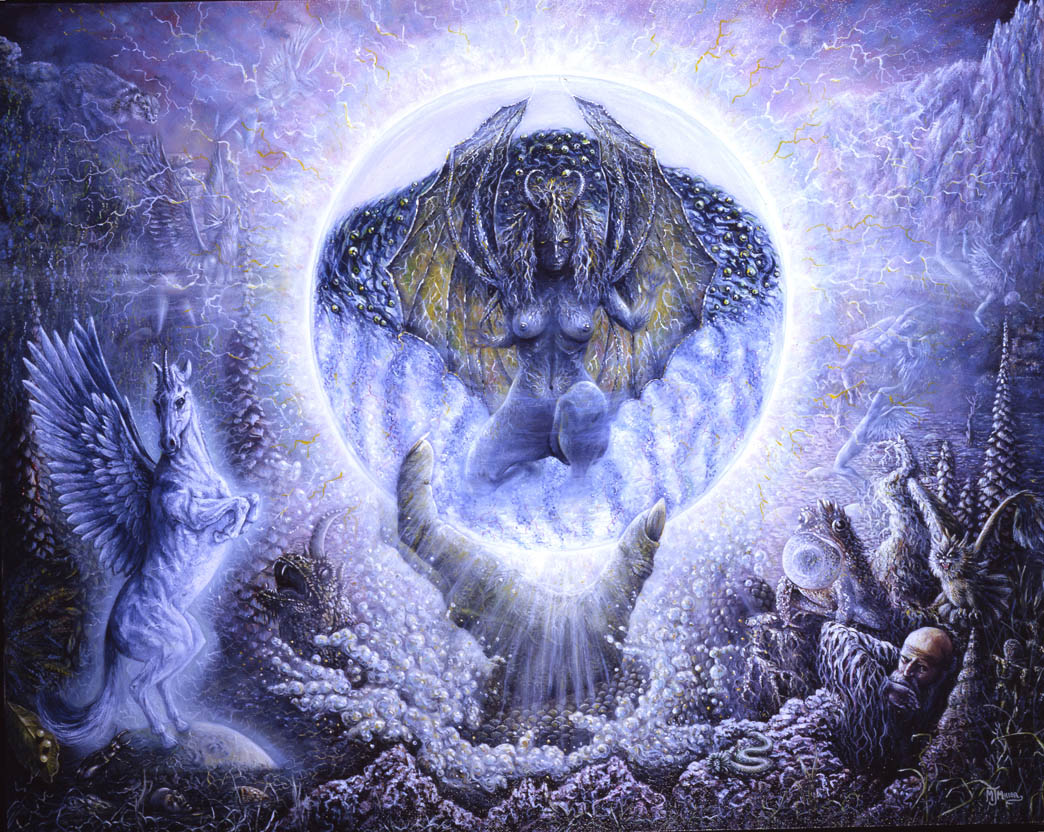 The fantasy paintings are packed full of detail , the Wolf, the Satyr, the Fantasy in Blue and Barbaras World.